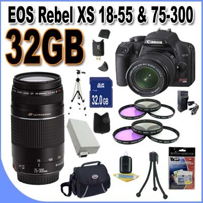 Canon EOS Rebel XS 10.1MP Digital SLR Camera with EF-S 18-55mm f/3.5-5.6 II Lens & Canon 75-300 USM Lens (2 LENS KIT) With 32GB Accessory Saver Kit Review